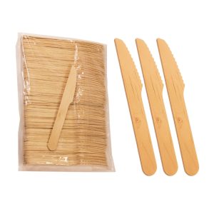 6" Wood cutlery Knives. A great alternative to plastics and expensive corn based products. Package 100 pieces in a bag.