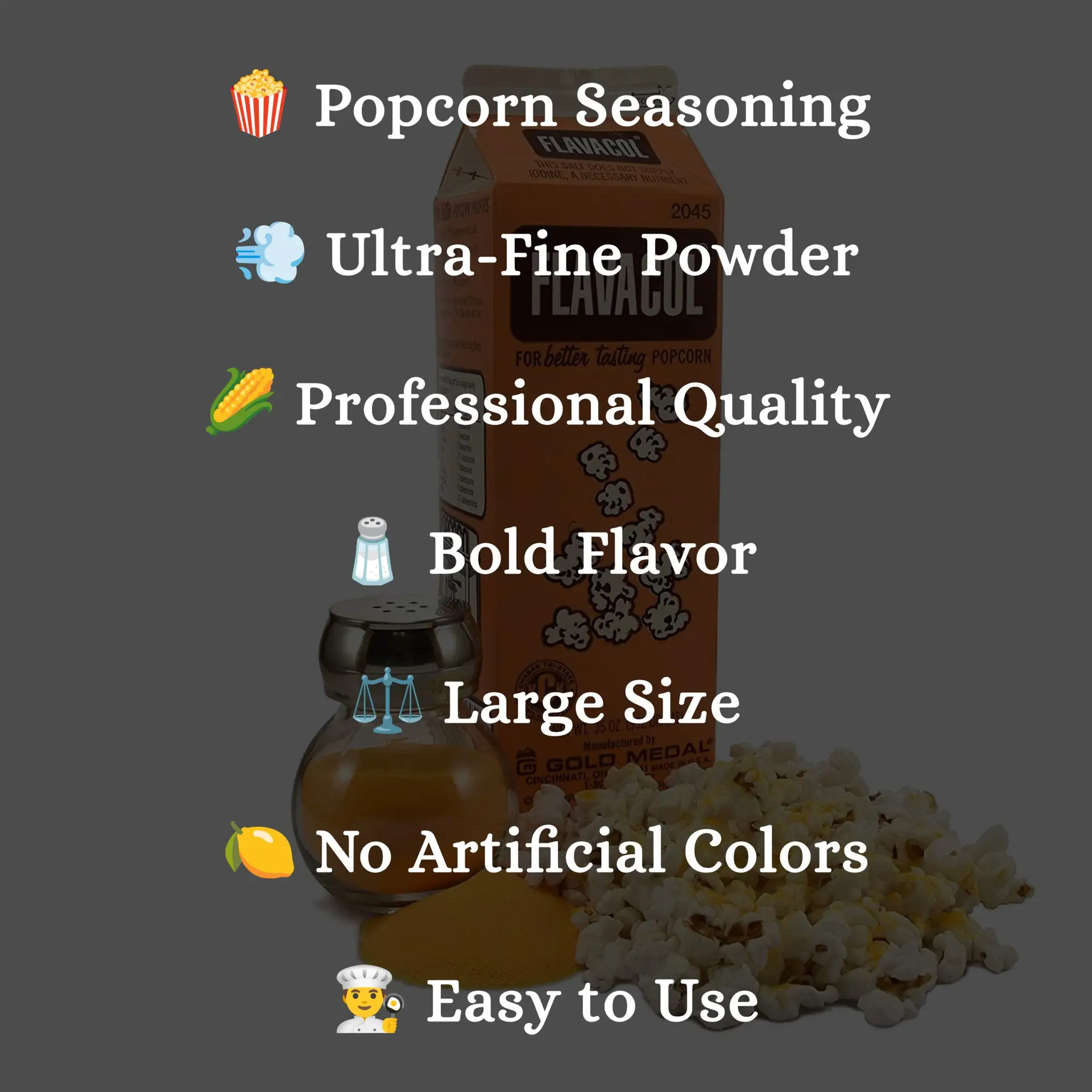 - 🧂 Flavacol Popcorn Salt for Bold, Buttery Flavor – Specially formulated fine salt with natural butter flavoring coats each kernel evenly, giving your popcorn that signature golden color and savory taste you love from the movies.