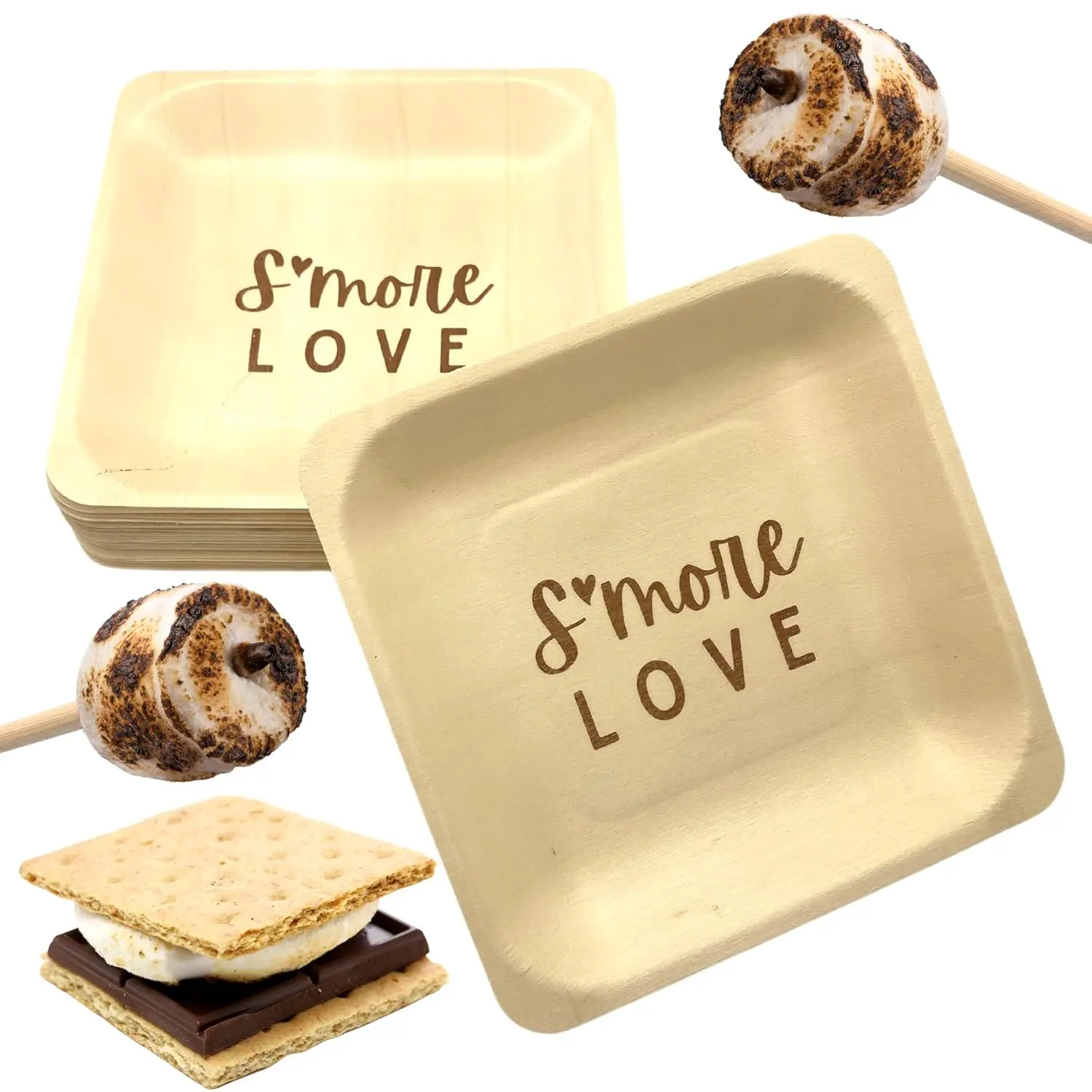 - Includes (50) 5.25″x5.25″ S’more Love Plates Made of White Birch Wood with Natural Wood Grain, Color and Texture. 100% Compostable and Biodegradeable