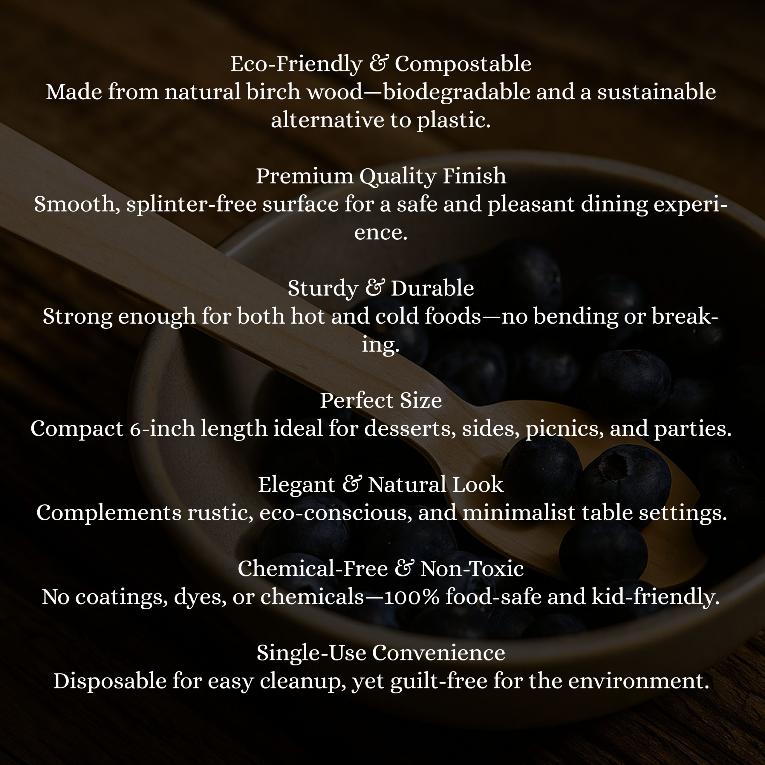 6″ Wooden Premium Perfect Ware Cutlery Spoons. Case of 1,000ct. Each spoon is produced with a premium grade of birchwood. Earth-Friendly and Durable. Great alternative to Heavy Weight Plastic. Perfect for Restaurants and Catering. Be Green at your next Party.