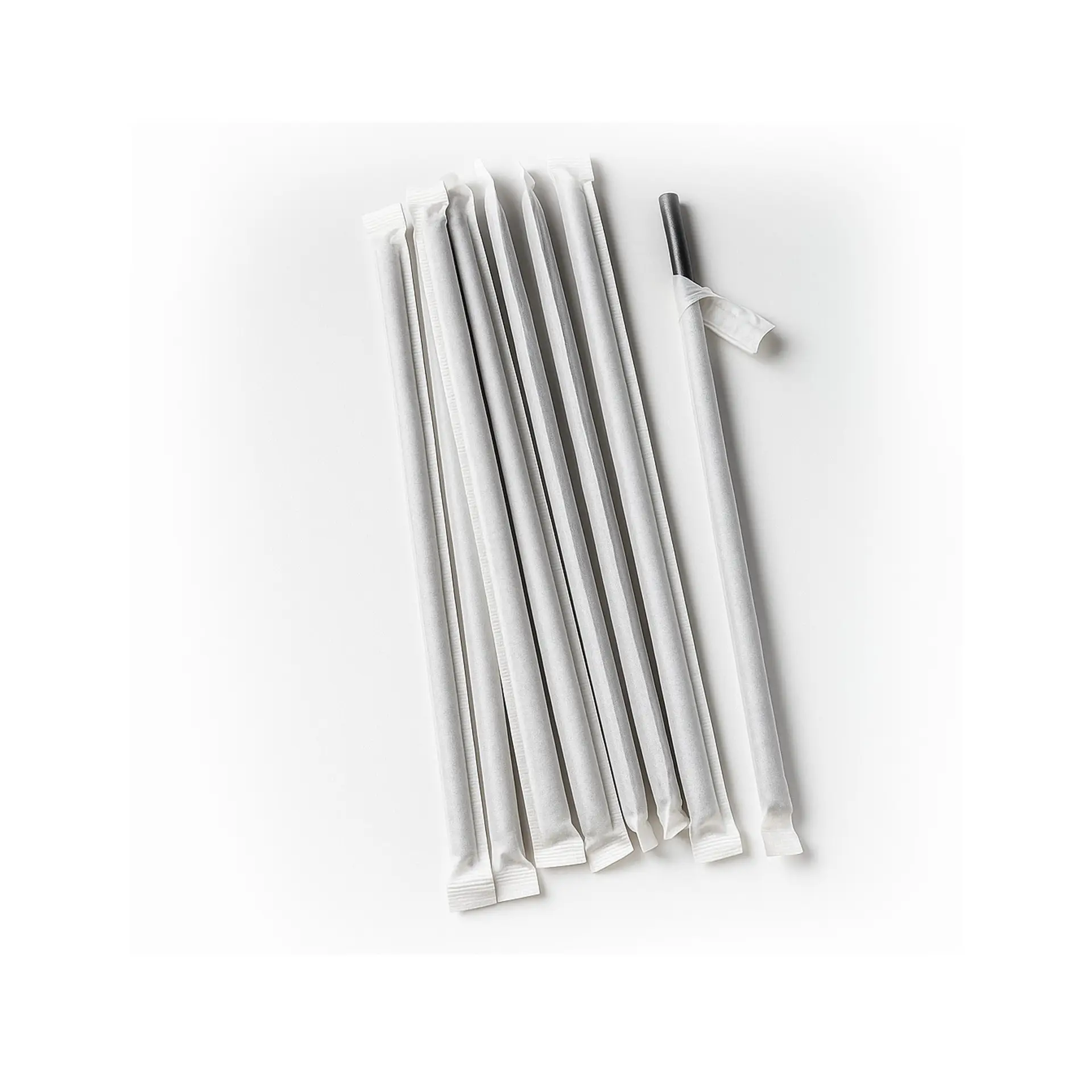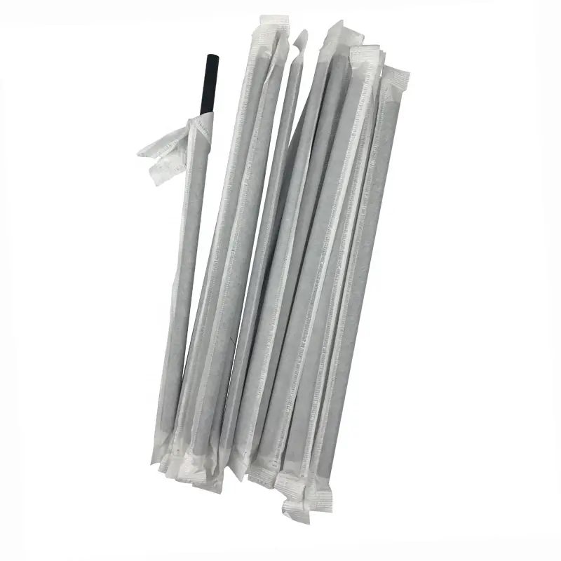 Paper Straw 7.75 Inch Wrapped Jumbo Straw Black 5000 count. Wrapped 7.75 Inch Jumbo Paper Straw. 6mm Thickness.Strong and Durable Straw. Compostable and Earth- Friendly. Pack Size is 10-500 count. Join the Movement and be Green at your Next Event or Restaurant. We Have Stock. Please call 1-800-341-0079 for Bulk orders. We can Customize Your Straw on the Wrapper and Straw.