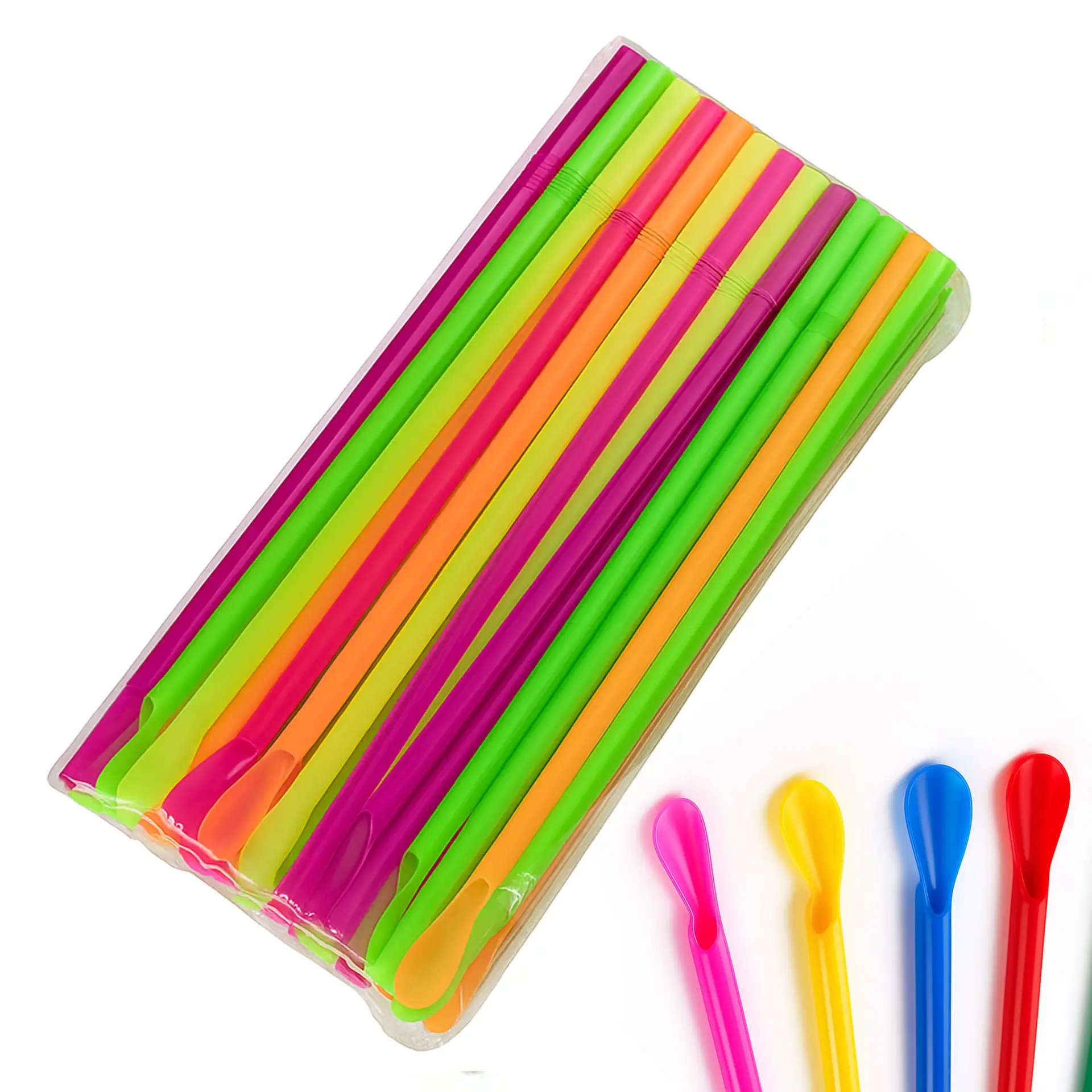 8" Neon Unwrapped Spoon Straws Assorted Colors