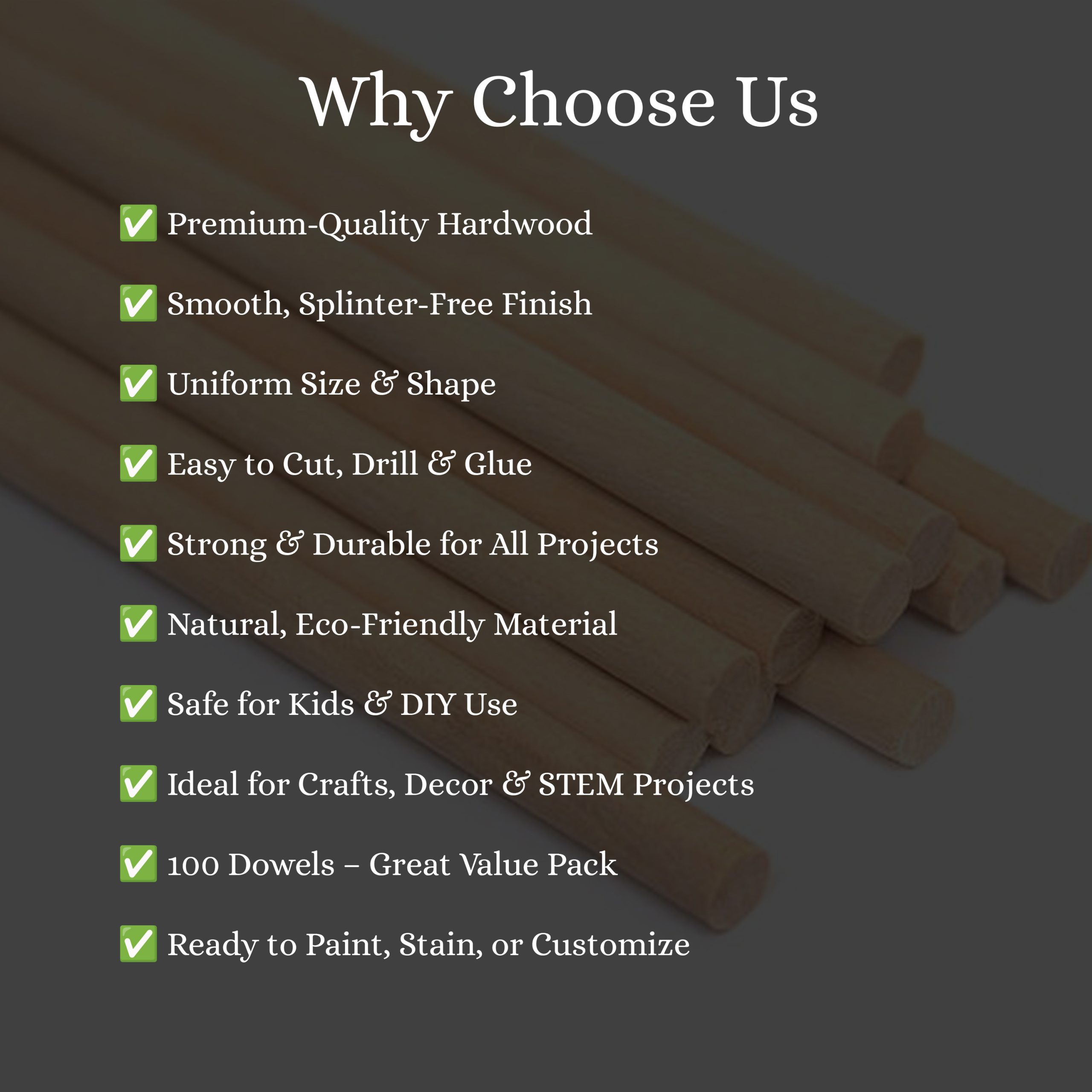 12″ x 1/4 Craft Dowels- Pack of 100ct- Great for School and Craft Projects
