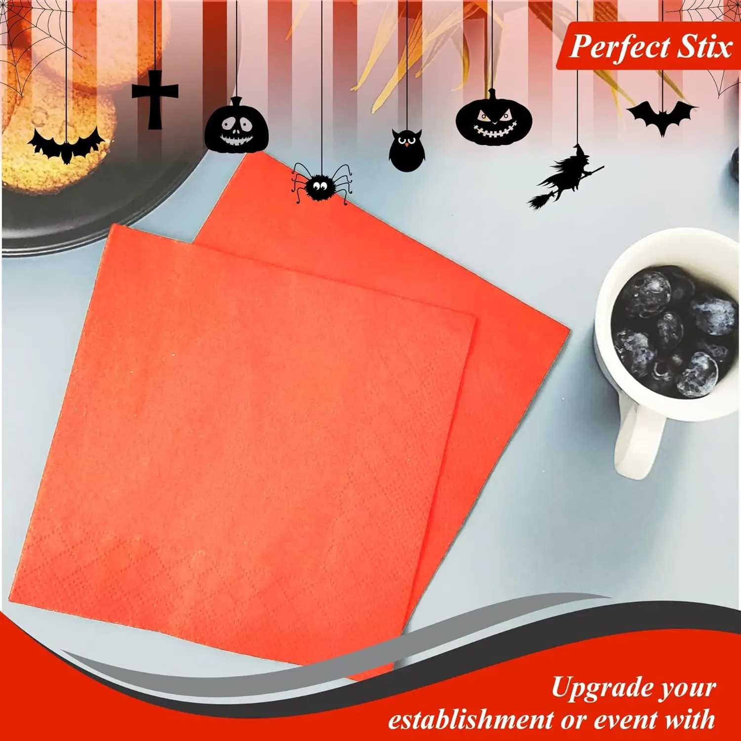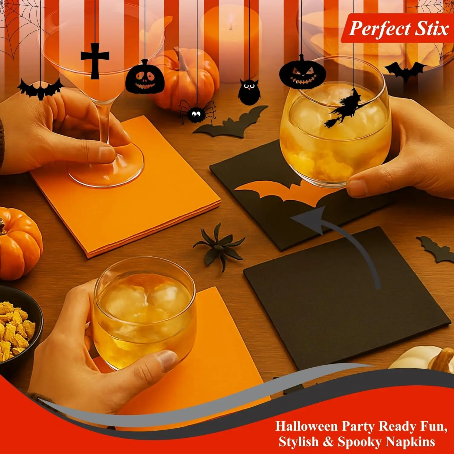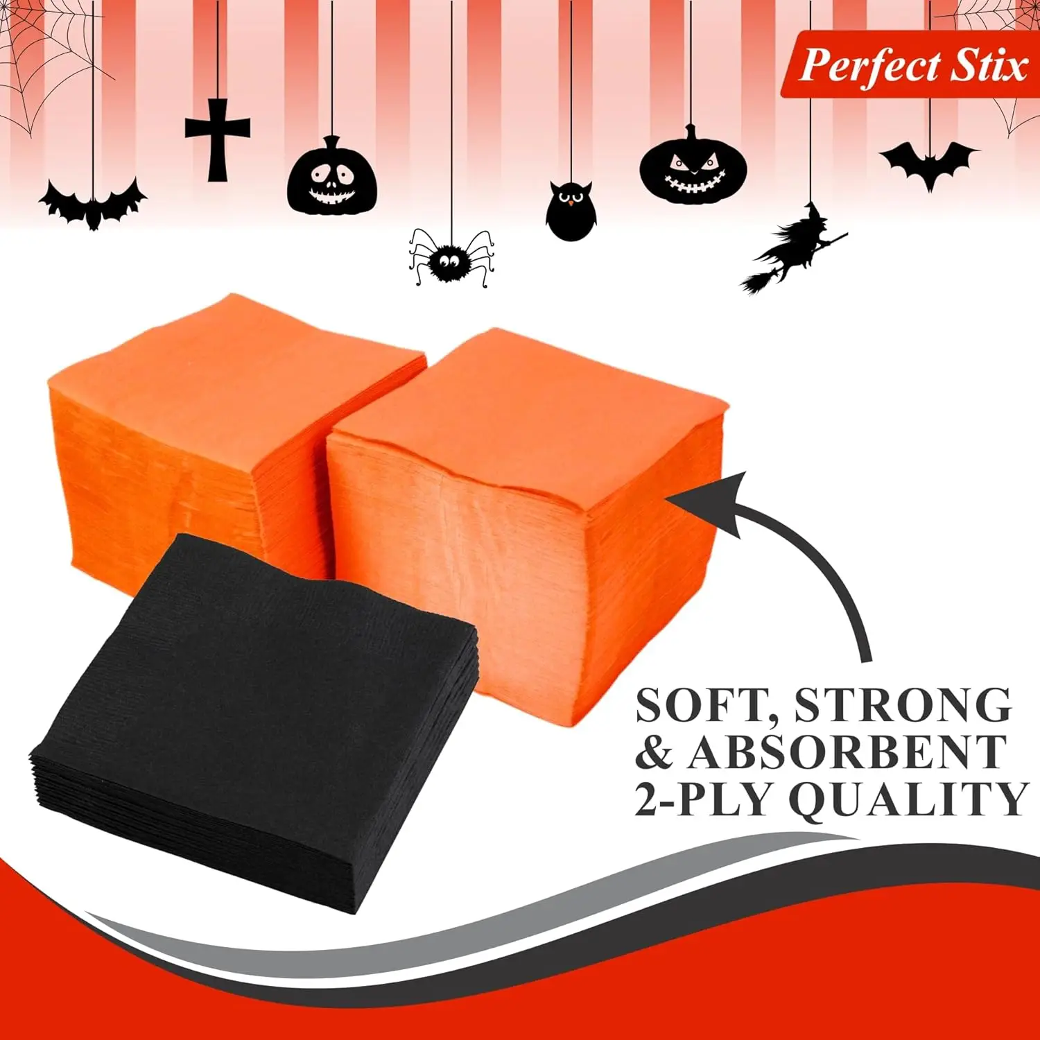 Perfect Stix Halloween Cocktail Napkins, Black and Orange, 200 Count Pack