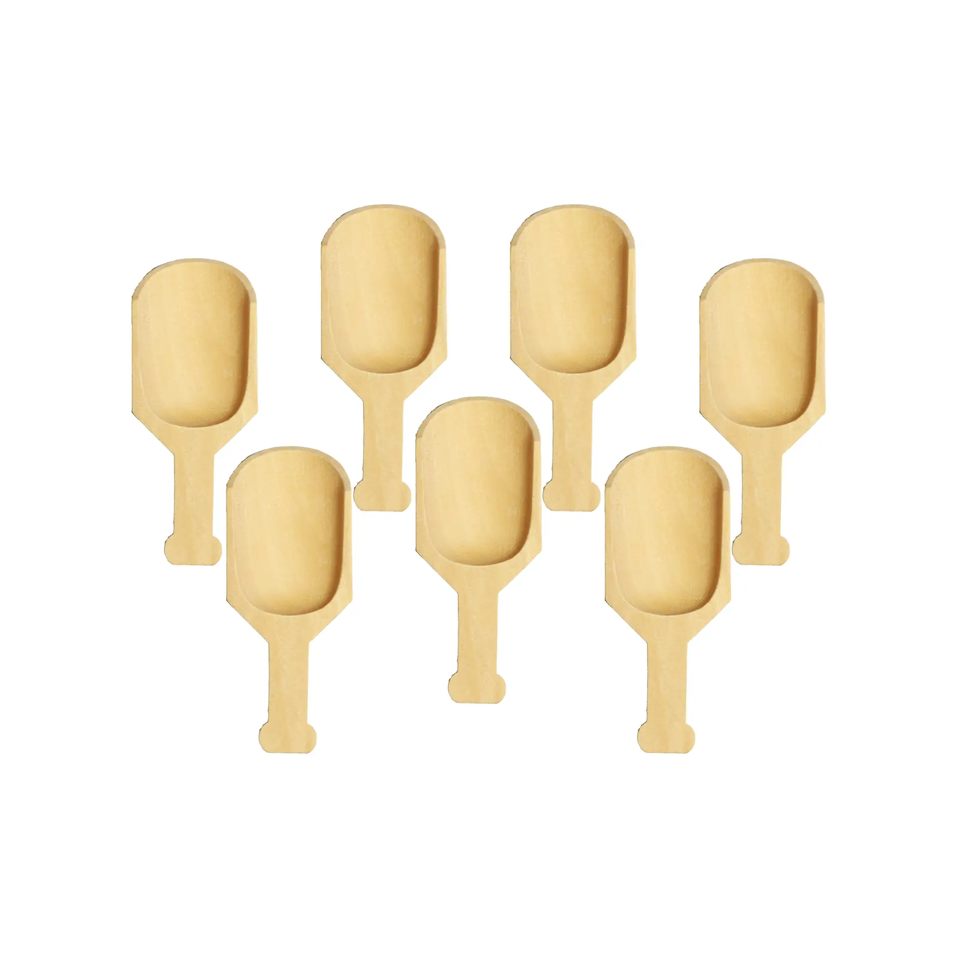 3″ long x 1-1/4″ wide wood scooper. This product is great for scooping candy, bath salts, and laundry detergent. 50ct