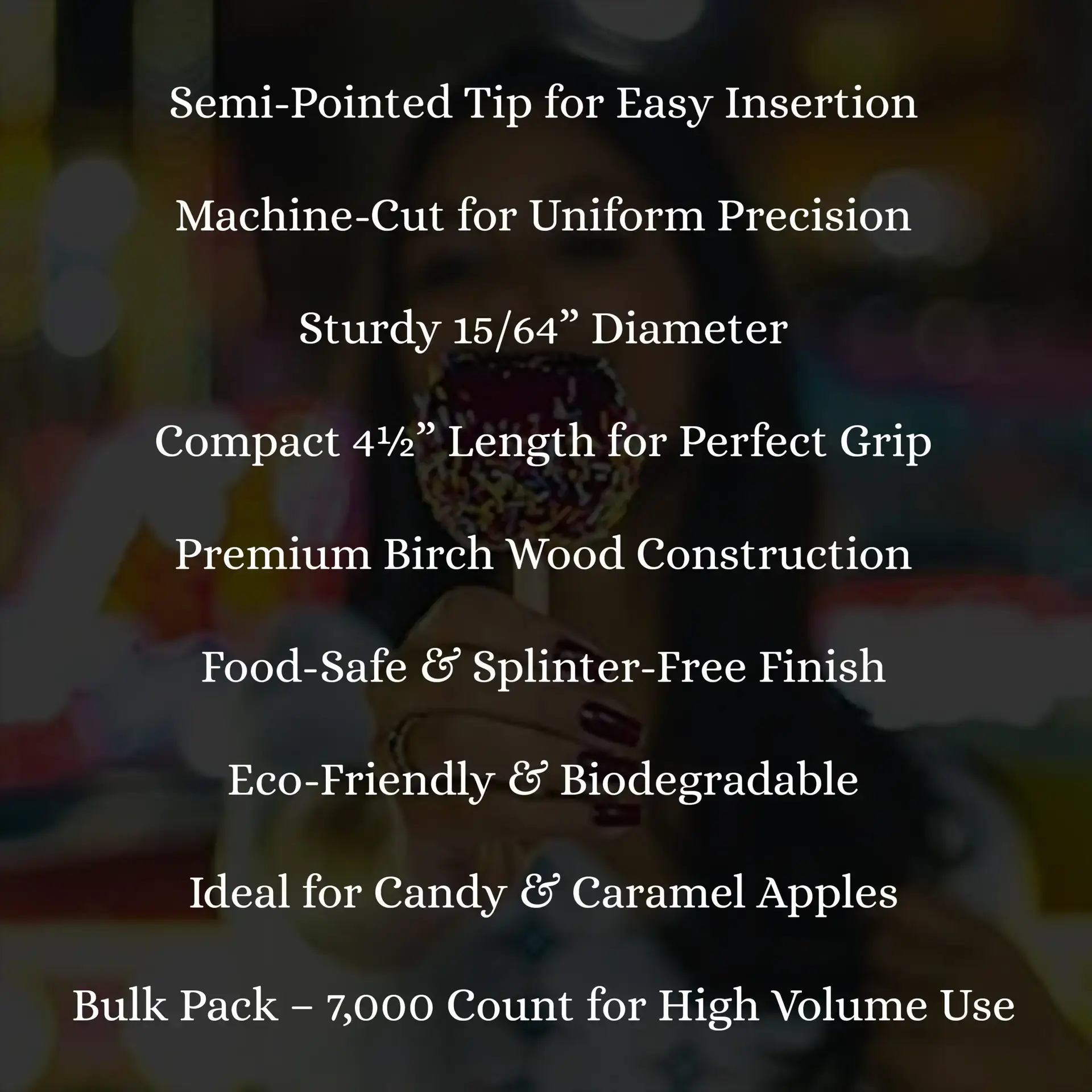 4 1/2″ x 15/64″ Semi Pointed Machine Candy Apple Sticks Case of 7,000ct (Item# CDS45SP15)